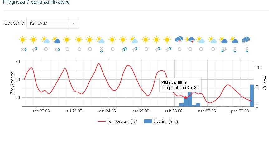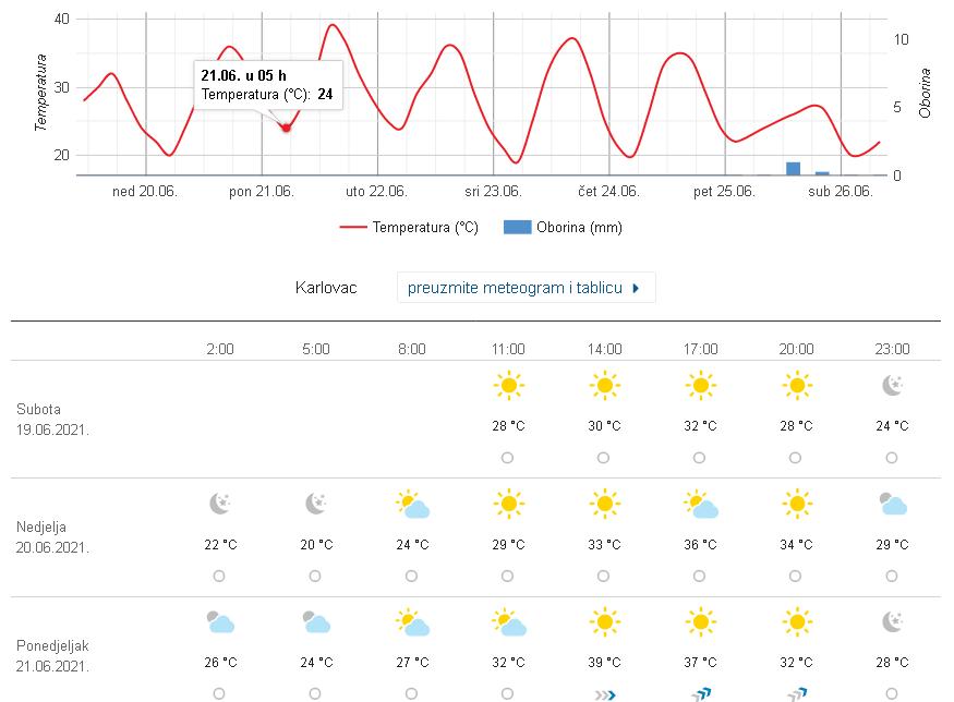 HR model kaže malo manj za vikend. V začetku novega tedna pa 35°C. Takarat naj bi bile jutranje temperature okoli 20°C.